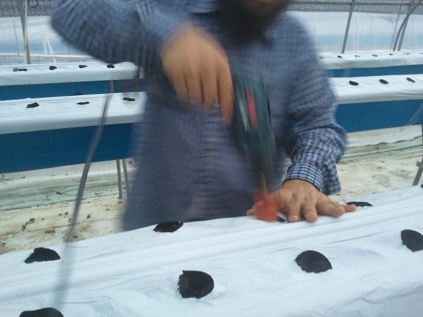상토에 홈을 파고 나면 다음에 딸기모종은 그냥 꽂아서 정리만 해주면 된다.