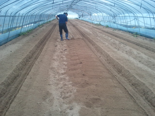 비닐을 모두 걷어낸 자리에 트랙터를 이용하여서