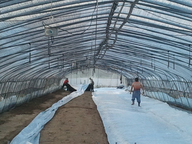 그렇게 손질을 마친 하우스안에서 비닐을 펴주는 작업을 하고 있다.