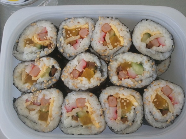 아이들과 함께 축제장에 나오면서 김밥을 싸가지고 왔네요.