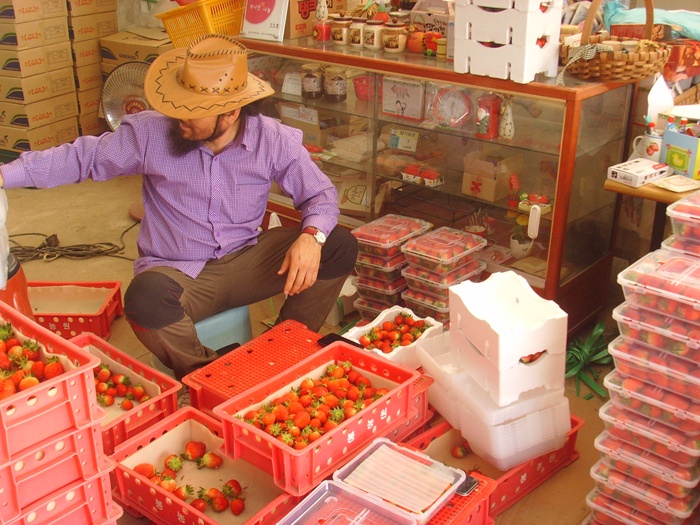 봉털딸기도사는 부지런히 백화점에 납품할 딸기를 정성스럽게 포장하고 있습니다.