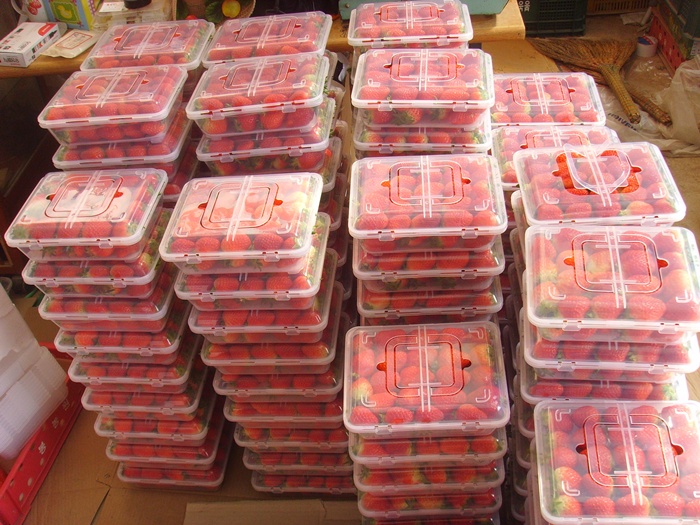 아침일찍부터 딸기를 수확하여 포장을 하고