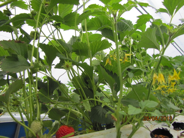 또 한쪽에는 이렇게 딸기가 익어가고 있습니다.
