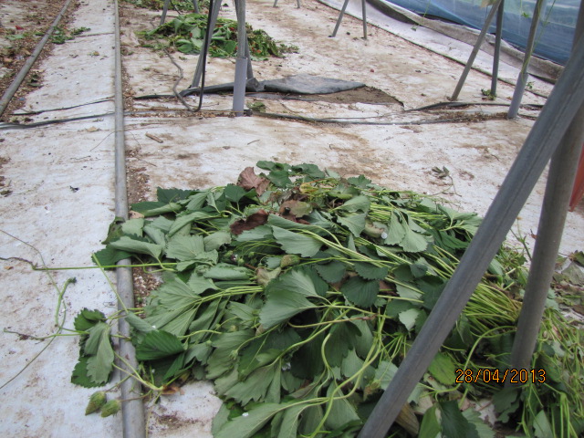 토마토모종을 심어놓은 한쪽의 딸기모종을 베어내고 있습니다.