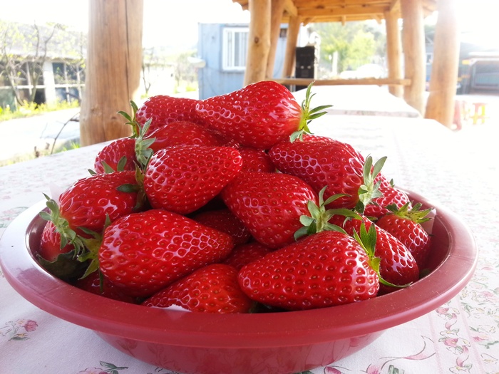 딸기체험을 오시는 분들은 딸기하우스에 들어가셨다가