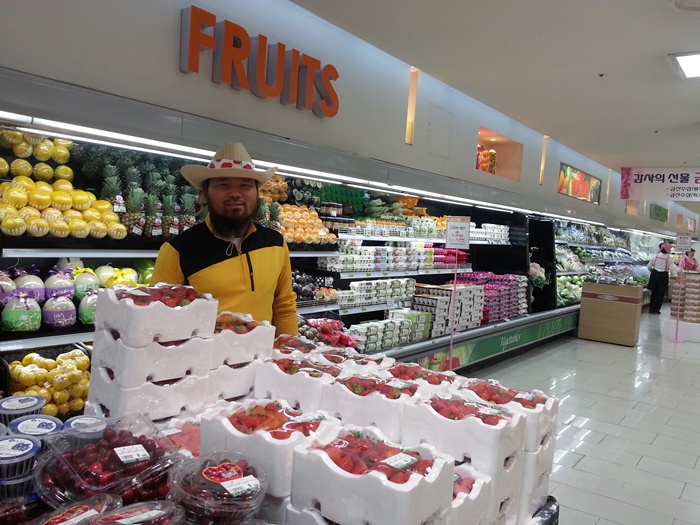 백화점 한켠에 있는 봉농원딸기 판매코너...