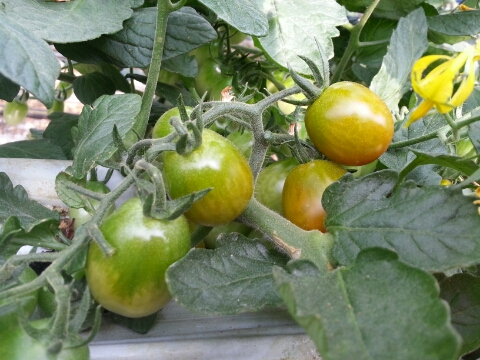 대추토마토가 볼그스름하게 달려있네요.