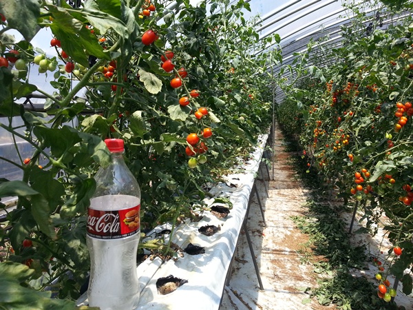 하우스안에서 얼음물이 없으면 도저히 견딜수 없는 온도..