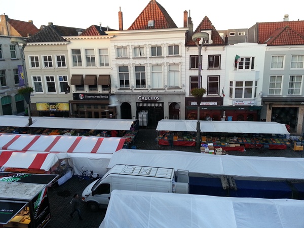 새벽에 시장을 만들어서 노천카페에 지장이 없도록