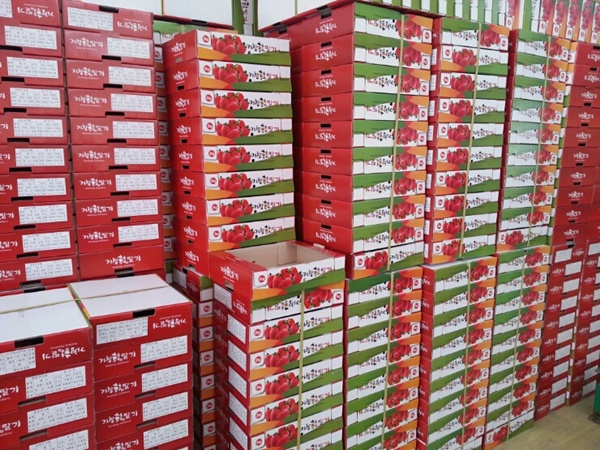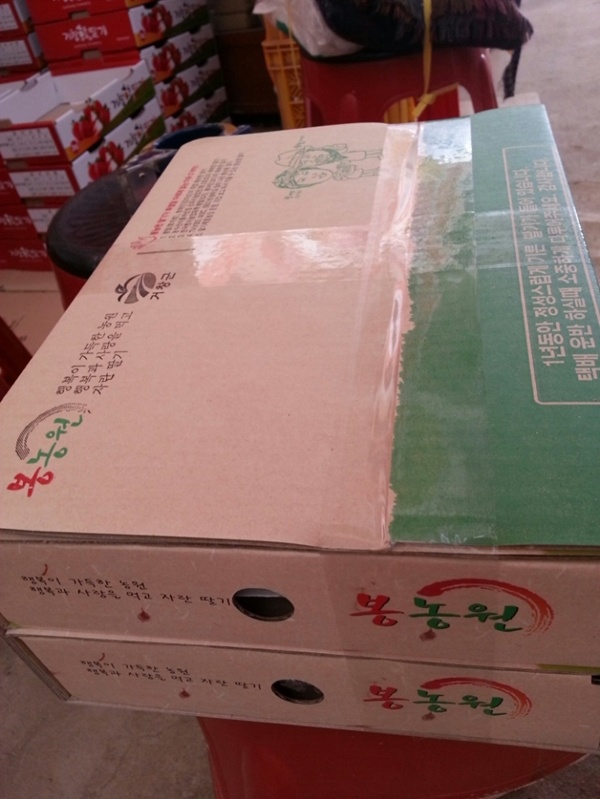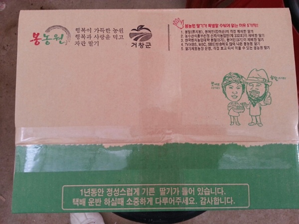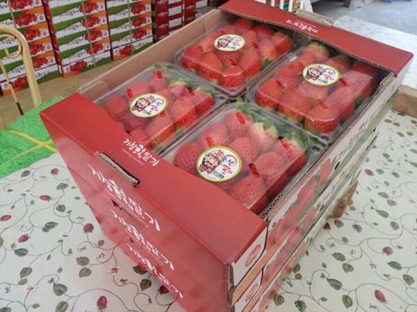 백화점으로 가는 딸기는 또 이 포장박스에 담아서 나갑니다.