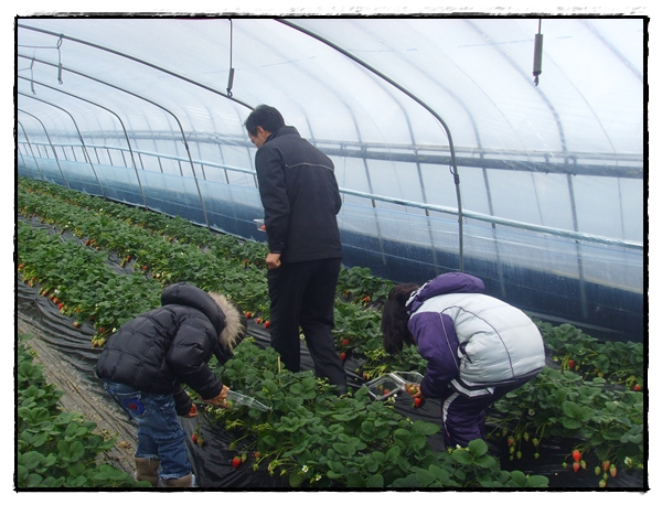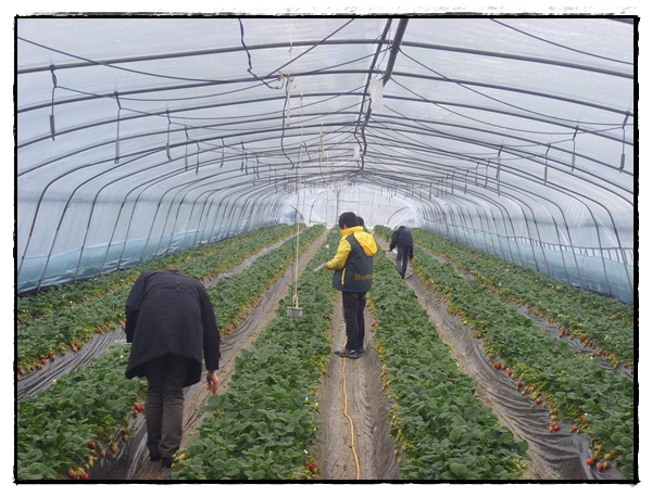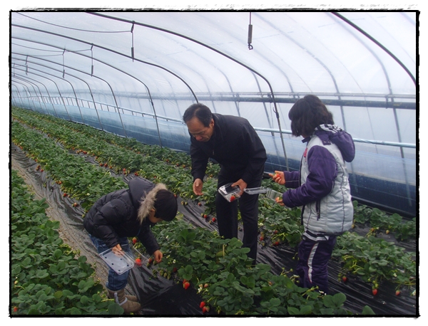 아빠가 딸기 따는 법을 자세하게 가르켜주시고....