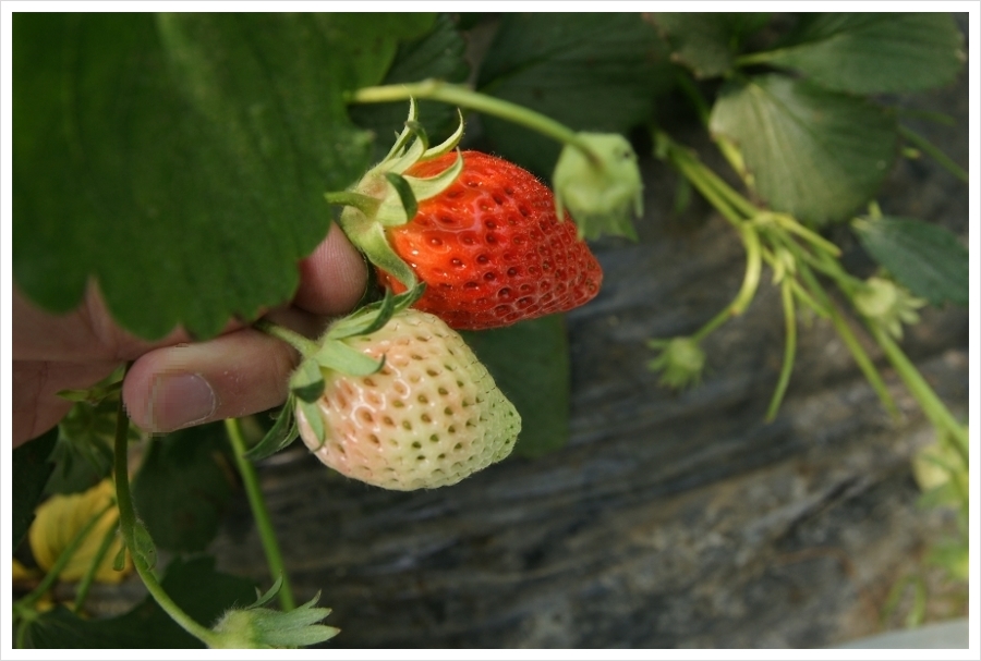 집에 가는 길에 따먹을 생각으로 빨간 딸기가 달린 놈을 골랐다~