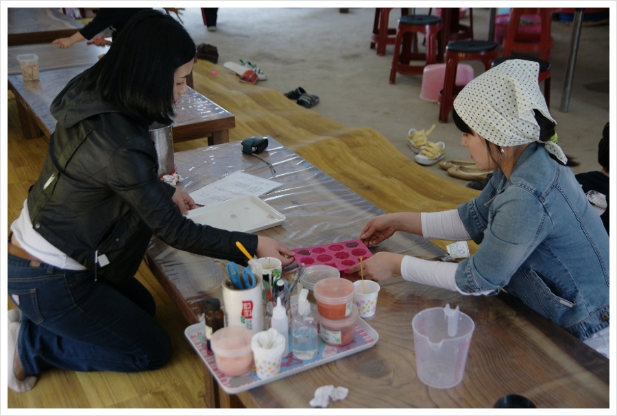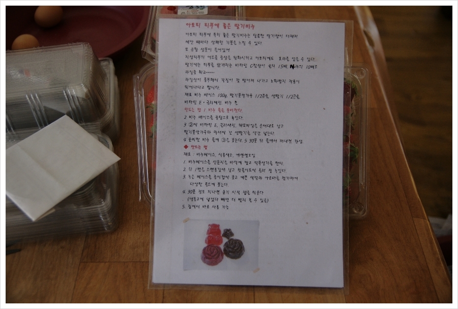 진우맘누나와 퓨어 누나는 딸기 비누체험 준비중..