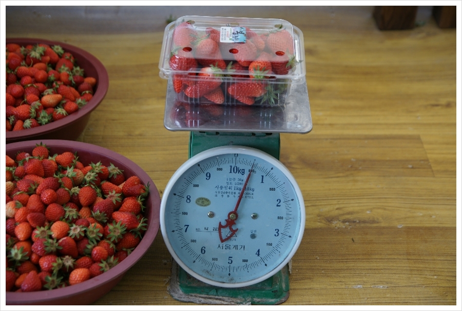 우리 5명이 딴 딸기는 다 정확히 500그람..