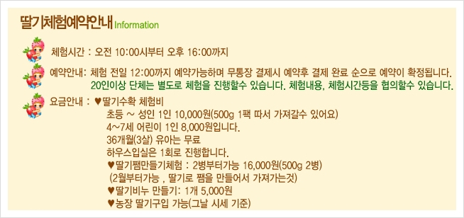 딸기체험에 관해 궁금한 것은 봉털님 혹은 봉여인님한테 전화해서 물어보면 된다~
