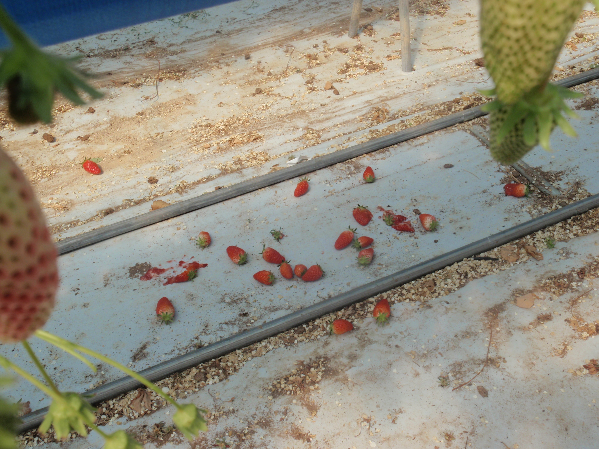 나오면서 본 하우스 바닥엔 아까운 딸기들이 여기저기...