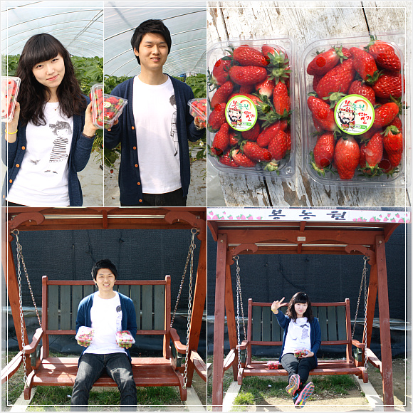 남자친구와 이야기도 하고 사진도 찍으며 딸기를 따서 그런지