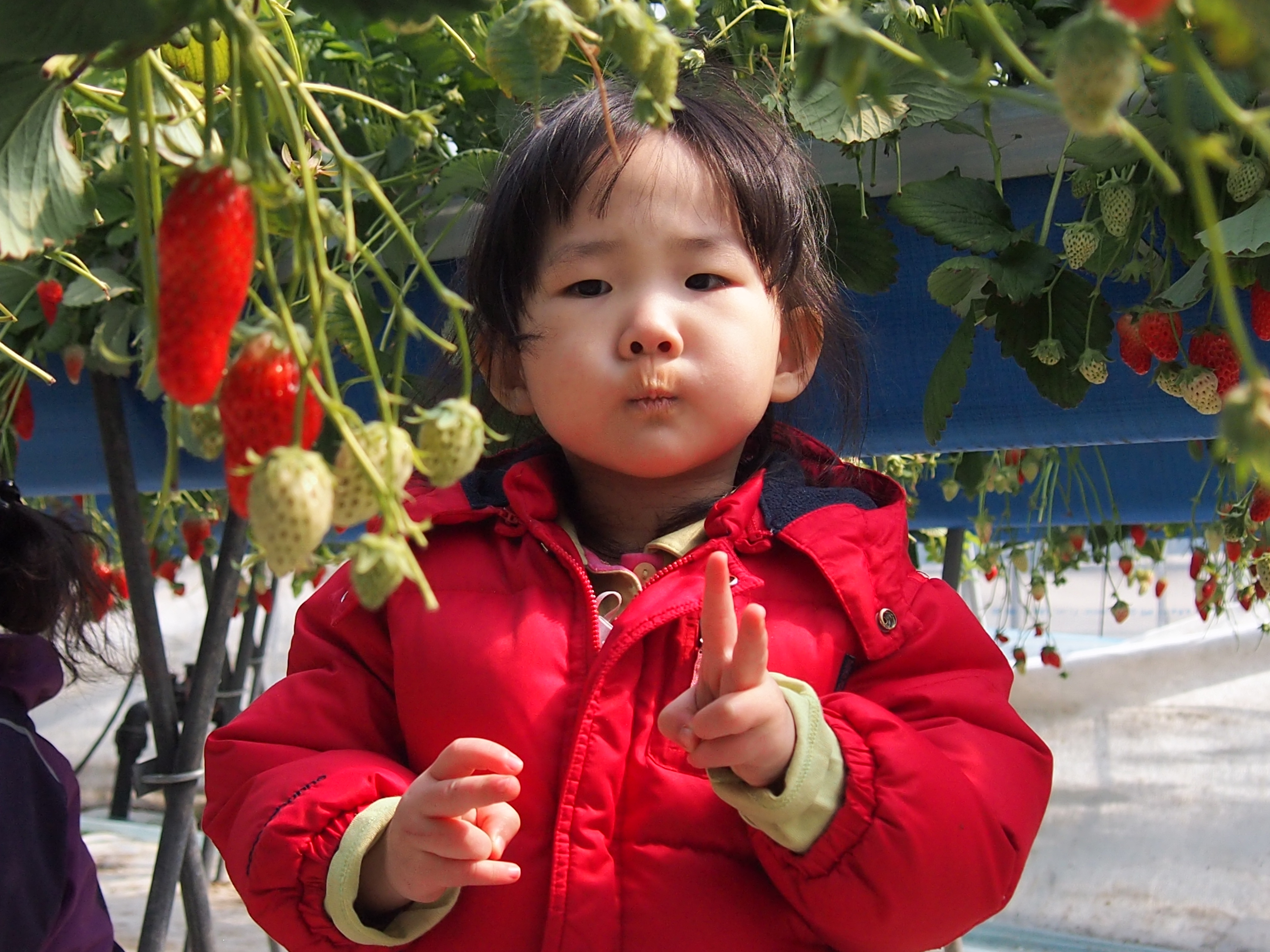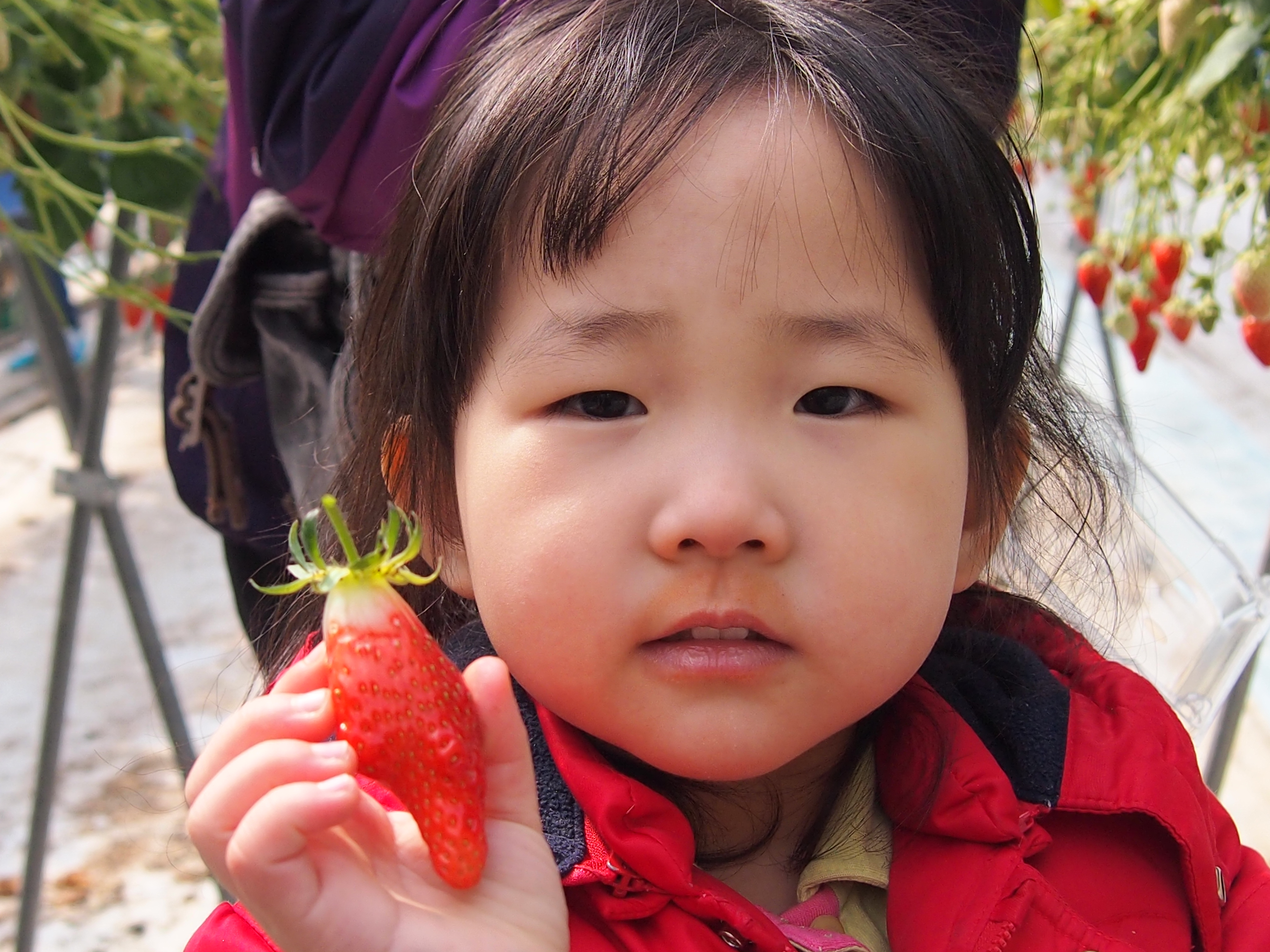 사진 찍는데 카메라는 안보고 딸기만 쳐다보고 있는 막내녀석..
