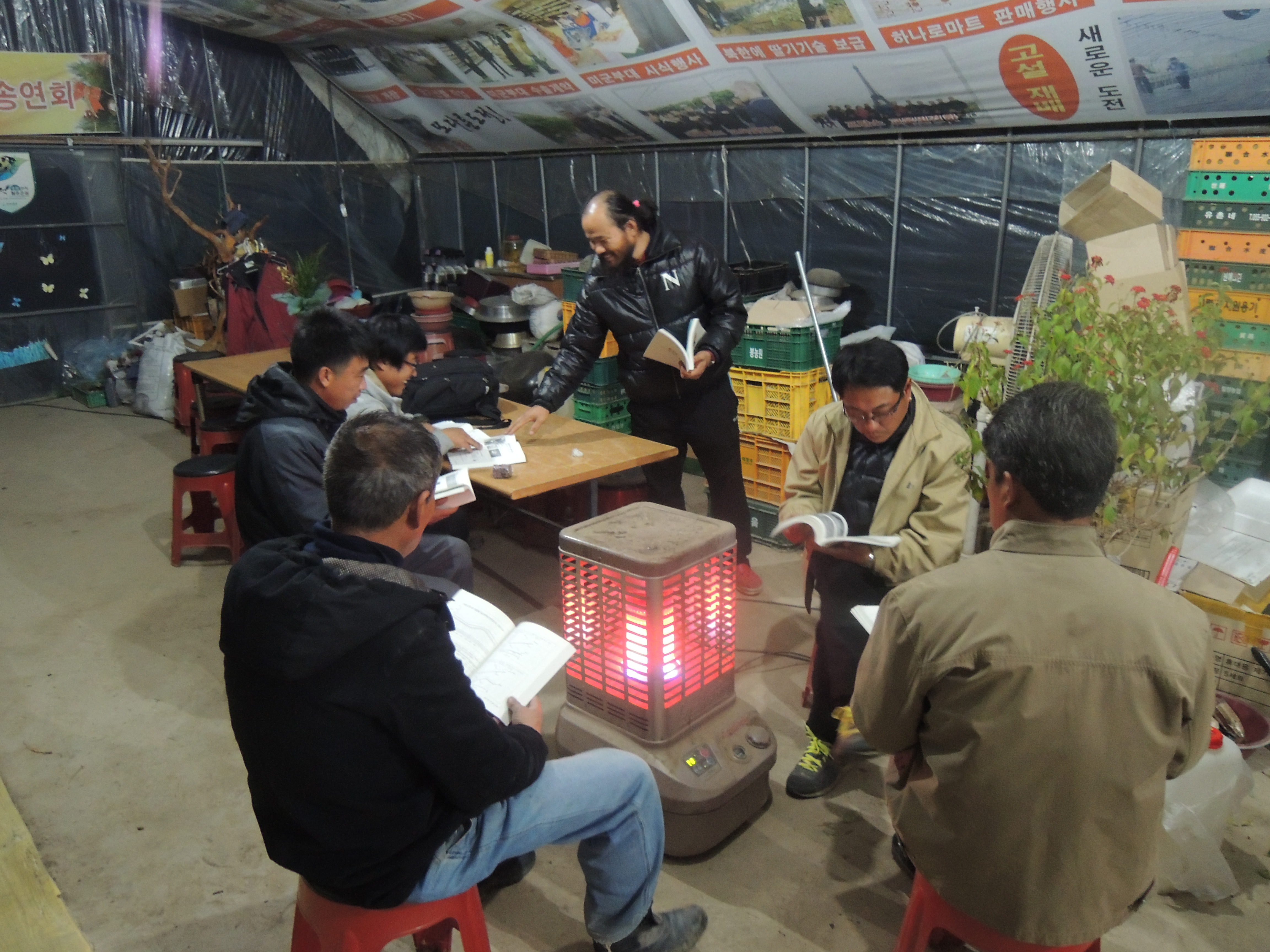 매주 화요일. 고설재배 딸기로 귀농하시거나 창업을 하신 분들이 각 지역에서 모여서 각종 정보와 기술을 공유하는 자리입니다.